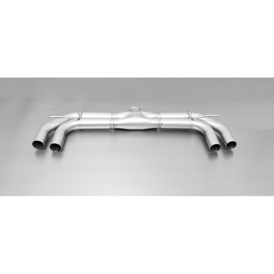 Remus Resonant Catback System mit schallgedämpftem Endschalldämpfer links/rechts mit 4 Ø 84 mm abgewinkelten Endrohren, Rollrand, verchromt – Golf 7 Schrägheck 2.0 GTI 162 kW CHHB 2013-2016