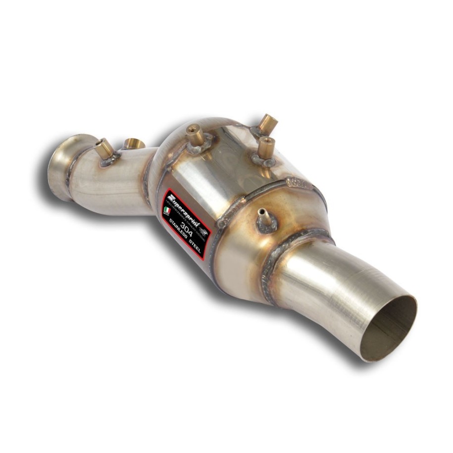 Diese exklusive Funktion garantiert Emissionen, die mit denen des serienmäßigen Katalysators vergleichbar, wenn nicht sogar völlig gleichwertig sind; bietet aber gleichzeitig eine absolut identische Leistung wie das jeweilige Downpipe in der Racing-Version, mit gleichem Querschnitt und ohne Katalysator.