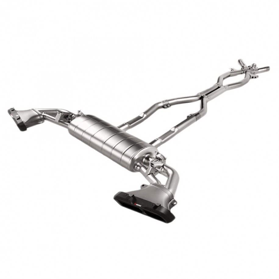 Dieses Produkt besteht aus hochwertigem, leichtem Titan, was zu einer Gewichtsersparnis von 34,2 % im Vergleich zum originalen AMG Performance-Auspuff führt. Das komplett sandgestrahlte Äußere wird durch ein neues Design der Schalldämpfer aus handgefertigter Kohlefaser mit einer Titan-Innenhülse vervollständigt. Für ein perfektes Klangerlebnis sorgen drei Auslassventile, die über ein speziell entwickeltes Steuerset angesteuert werden: eines auf beiden Seiten des Schalldämpfers und eines im X-Anschluss im Krümmer. Die Ventilgehäuse, das X-Stück und der Stützpfeiler – oder die zentrale Säule – werden alle in der hauseigenen Gießerei gegossen. Das System erzeugt einen unverwechselbar reinen und tiefen Klang mit einem vollen Klang im Leerlauf und einem klar definierten und kräftigen Klang bei steigender Drehzahl, was bei höheren Drehzahlen zu einem vollen und stark sportlichen Klang führt. Während der Installation ist keine Neuzuordnung erforderlich. Ein optionales Akrapovic Sound Kit ist ebenfalls erhältlich, um die volle Kontrolle über den vom System ausgegebenen Ton zu haben. Das Evolution-System (Titanium) ist ECE-zugelassen für Fahrzeuge mit GPF. Das System wurde als Ersatz für Fahrzeuge entwickelt, die mit dem originalen AMG Performance-Auspuff ausgestattet sind, und ist nur für Fahrzeuge mit der originalen Anhängerkupplung geeignet. ECE-Homologation nicht gültig bei Einbau des Sound-Kits.