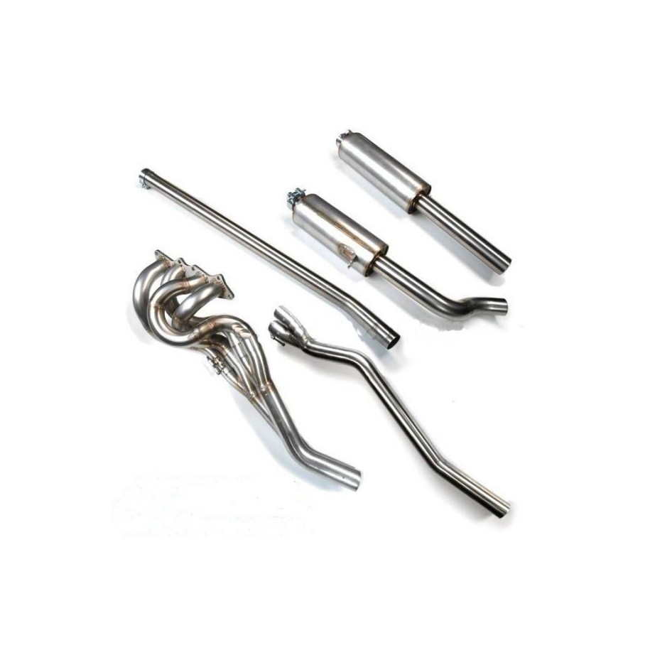 Complete exhaust line made according to the FIA category restrictions and also compatible with road models. From a technical point of view, to keep the weight of the exhaust low, only AISI304 stainless steel pipes with a thickness of 1.2 mm were used and the welds, to maximize strength and quality, are carried out only in Tig.