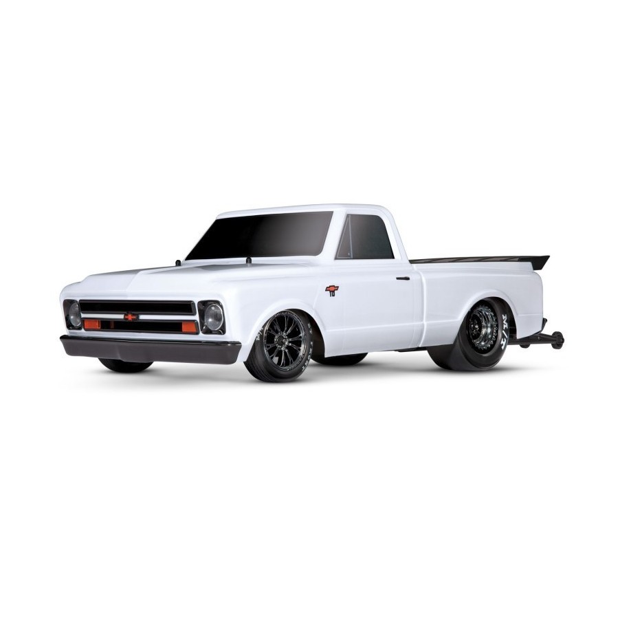 Drag Slash verblüfft mit seiner Karosserie. Perfekt reproduziert '67 Chevy C10, erhältlich in sechs verschiedenen Farben. Die klassische Chevy C10-Form ist so geformt, dass sie superbreite Slick-Reifen aufnehmen kann, und ist mit einem Frontgrill, einem Heckflügel und LED-Beleuchtungsschüsseln vollständig detailliert.