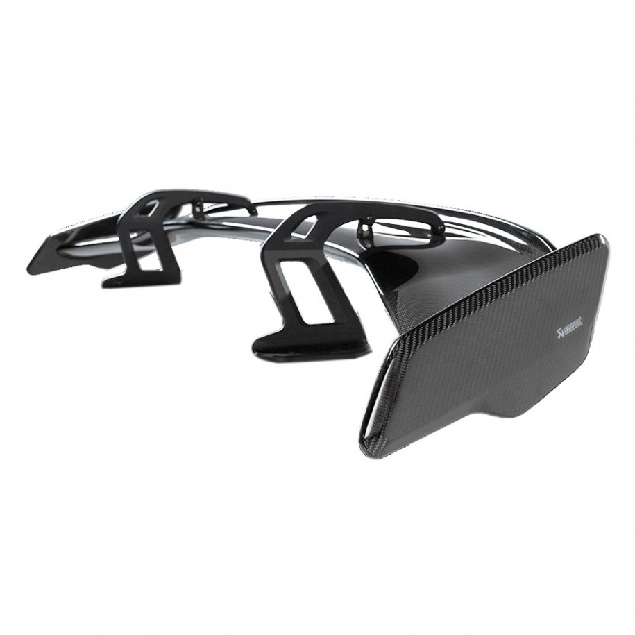 Completamente regolabile su tre livelli, l'alettone posteriore deve essere impostato manualmente sull'angolazione preferita prima della guida. È approvato ABE con omologazione AKR-WI KBA 31882 e rifinito con un logo monocromatico Akrapovic su ciascun lato.