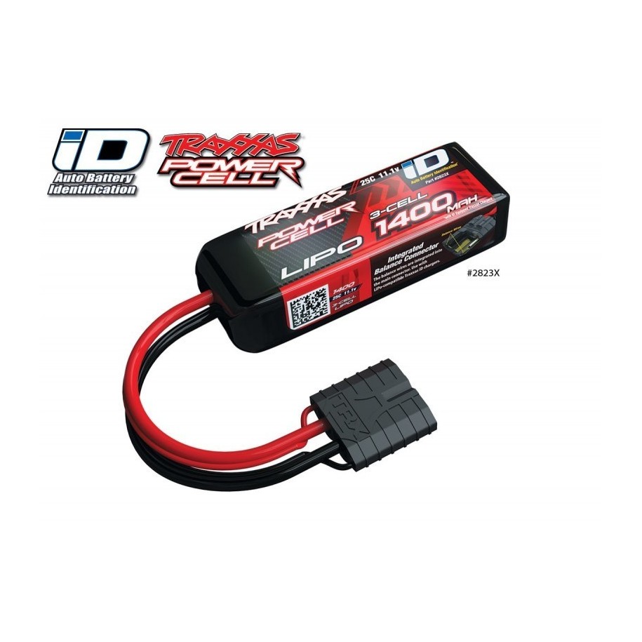 Traxxas 2823X - Batteria Lipo 1400mah 3s 11,1v 25c Power Cell con connettore ID con funzione di riconoscimento ed identificazione automatica nel momento in cui si collega la batteria ai caricabatterie originali Traxxas Live ID Bluetooth 2971G e 2973G.