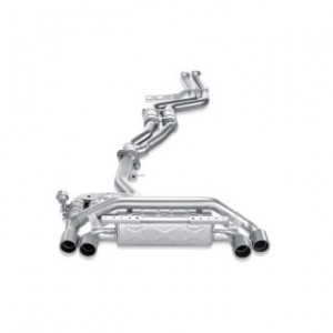 Seguendo il successo e l'esperienza acquisita con lo Slip-On Line che Akrapovic ha sviluppato per la Gallardo, il nuovo scarico per Lamborghini Huracán porta questa splendida vettura a livelli elevatissimi. Costruito in lega di titanio di alta qualità, riduce significativamente il peso migliorando la maneggevolezza della vettura, lo Slip-On presenta tubi principali più grandi rispetto all'originale e un lay-out "a X" nel silenziatore per ridurre la contropressione, aumentando conseguentemente i valori di potenza e coppia su tutto l'arco dei giri-motore. Il rombo inconfondibile del V10 aspirato acquista una nota distintiva che coinvolge il guidatore, pur senza rumori indesiderati nell'abitacolo. A regimi più bassi e durante la guida di crociera le valvole sono chiuse, producendo una nota sonora più profonda e più nitida, ma quando i giri aumentano e le valvole si aprono, la colonna sonora rilasciata diventa entusiasmante. Questo eccezionale impianto è rifinito con quattro terminali in fibra di carbonio, che sottolineano la bellezza di questo scarico. QUESTO PRODOTTO NON SODDISFA I REQUISITI DI CONFORMITÀ DELL'EMISSIONE PER L'USO STRADALE O AUTOSTRADALE.